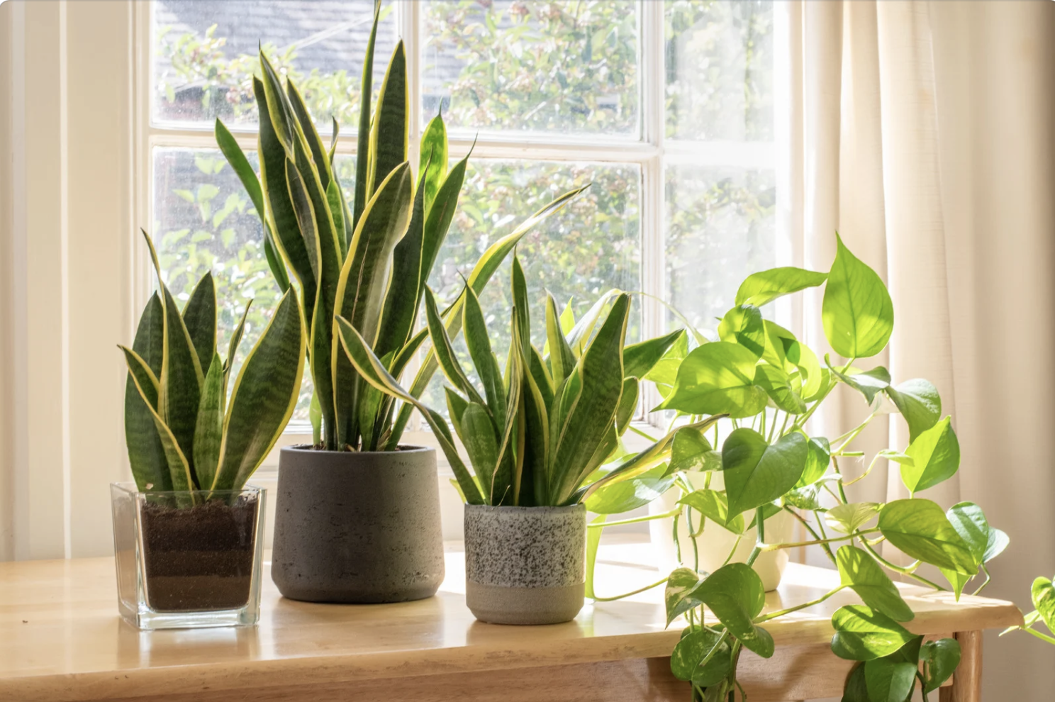 But be aware - snake plants are toxic to dogs and cats if ingested. So keep this plant high on a shelf or in a hanging basket.